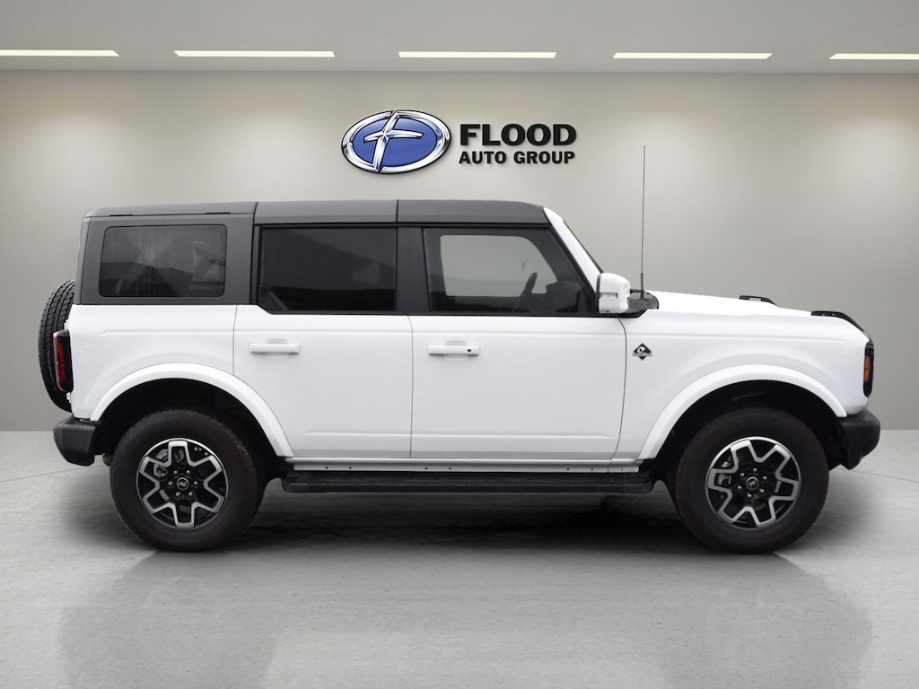Outer Banks 4WD 10-Speed Automatic 2.3L EcoBoost I-4 THREE DAY EXCHANGE POLICY!, FLOOD ADVANTAGE PROGRAM!, REAR VIEW CAMERA, CLEAN AUTOCHECK!, FULLY SERVICED AND RECONDITIONED!, LOCAL TRADE!, NON-SMOKER!, ONE OWNER !, LEATHER!, SERVICE RECORDS!, Bronco Outer Banks Advanced, 4D Sport Utility, 4WD, Oxford White, Roast w/Black Onyx w/Heated Leather-Trimmed/Vinyl Bucket Seats, 10 Speakers w/Subwoofer, 18 Bright Machined Aluminum Wheels, 360-Degree Camera, 4-Wheel Disc Brakes, 4.27 Final Drive Ratio w/Rear Locking Differential, ABS brakes, Adaptive Cruise Control, Additional Sound Deadening, Air Conditioning, AM/FM radio: SiriusXM with 360L, Auto High-beam Headlights, Auto-dimming Rear-View mirror, Automatic temperature control, Brake assist, Carbonized Gray Molded-In-Color Hard Top, Cargo Area Protector, Compass, Connected Navigation, Delay-off headlights, Driver door bin, Driver vanity mirror, Dual front impact airbags, Dual front side impact airbags, Electronic Stability Control, Emergency communication system: 911 Assist, Equipment Group 314A High/Lux Package, Evasive Steering Assist, Exterior Parking Camera Rear, Front & Rear Floor Liners, Front anti-roll bar, Front Center Armrest, Front dual zone A/C, Front fog lights, Front Parking Sensors, Front reading lights, Front Row Top Panels & Door Storage Bags, Front Row Top Panels Storage Bag, Front wheel independent suspension, Fully automatic headlights, Hard Top Sound Deadening Headliner, Heated door mirrors, Heated front seats, Heated Leather-Trimmed/Vinyl Bucket Seats, Heated Steering Wheel, Illuminated entry, Information on Demand Panel, Integrated roll-over protection, Leather Shift Knob, Low tire pressure warning, Occupant sensing airbag, Outside temperature display, Overhead airbag, Overhead console, Panic alarm, Passenger vanity mirror, Power door mirrors, Power driver seat, Power passenger seat, Power steering, Power windows, Radio data system, Radio: B&O Sound System by Bang & Olufsen, Rear seat center armrest, Rear-Window Defroster & Washer, Remote keyless entry, Security system, Sideview Mirrors, SiriusXM Radio w/360L, Speed control, Split folding rear seat, Steering wheel mounted audio controls, SYNC 4, Tachometer, Telescoping steering wheel, Tilt steering wheel, Traction control, Trip computer, Universal Garage Door Opener, Upgraded Carpet Floor Mats, Variably intermittent wipers, Voltmeter, Wireless Charging Pad.